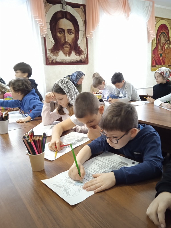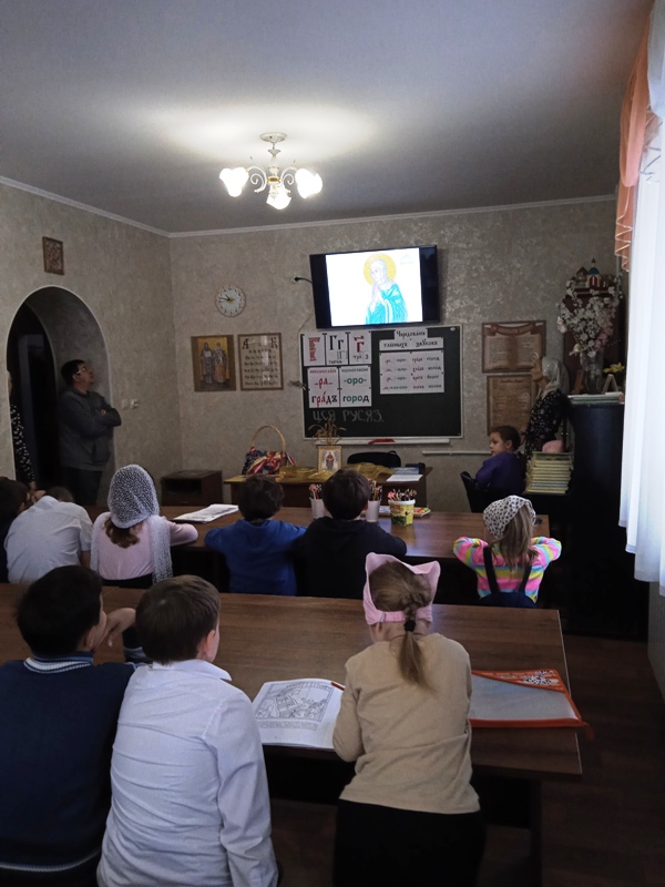 По окончании Божественной Литургии ребята отправились в свой класс, там за трапезой они услышали историю памятного дня, затем все посмотрели познавательный видеоматериал по теме урока, услышали звучание тропаря и величание праздника на церковно-славянском языке. Ещё побеседовали о силе молитвы Божией Матери, о том как важно с ранних лет Её почитать и любить. Во всех своих переживаниях ни в коем случае не отчаиваться, а возносить свои молитвы к нашей Усердной Заступнице пред Господом за нас грешных.
