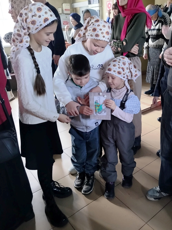 А ещё ребята подарили открытки двум прихожанкам храма, которые много лет несут послушание просфорниц.