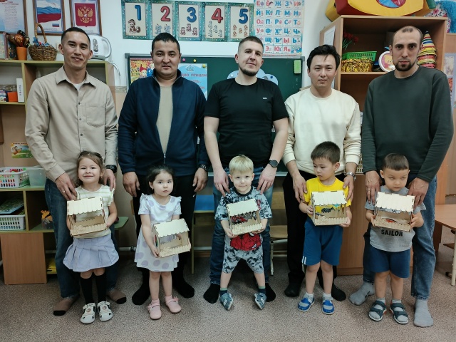 Папы с удовольствием делились своим мастерством, а малыши с восторгом наблюдали и помогали, чувствуя себя настоящими строителями и спасателями птиц. На деревьях возле детского сада появились новые, яркие кормушки, которые стали настоящим украшением и, конечно же, спасением для птиц в холодное время года.