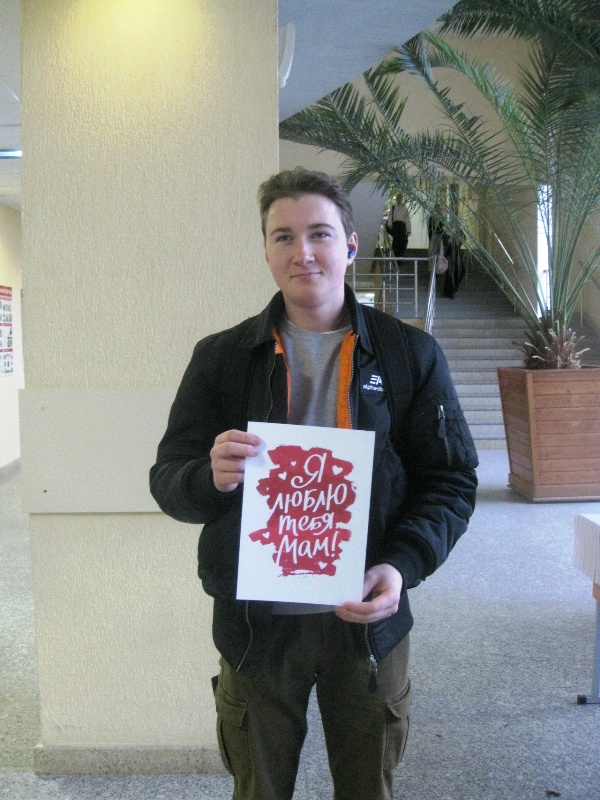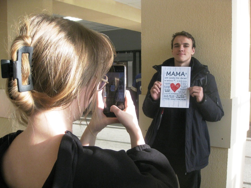 С большим воодушевлением студенты фотографировались с постерами, на которых написаны слова любви и благодарности маме, чтобы потом направить поздравительные фото своим матерям.