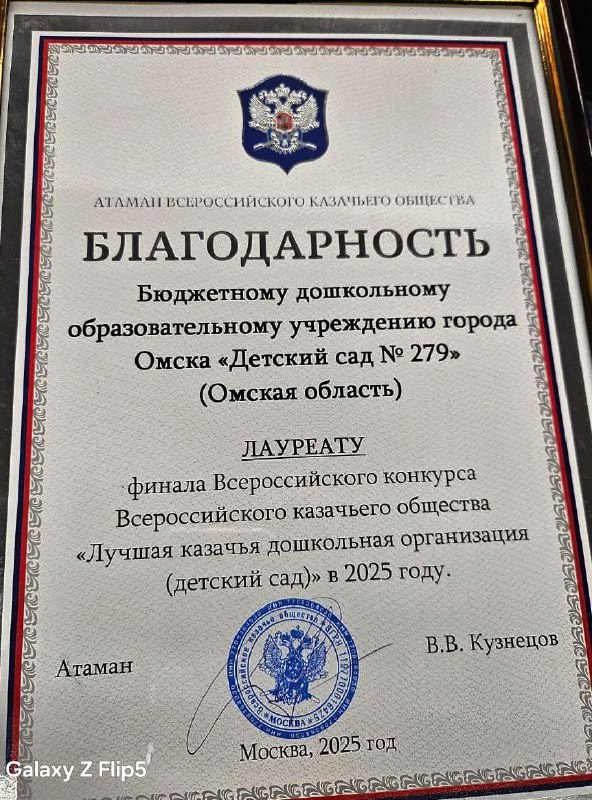 Омский детский сад 279 стал лауреатом Всероссийского конкурса Лучшая казачья дошкольная организация (детский сад) 2025 года