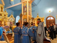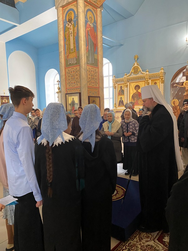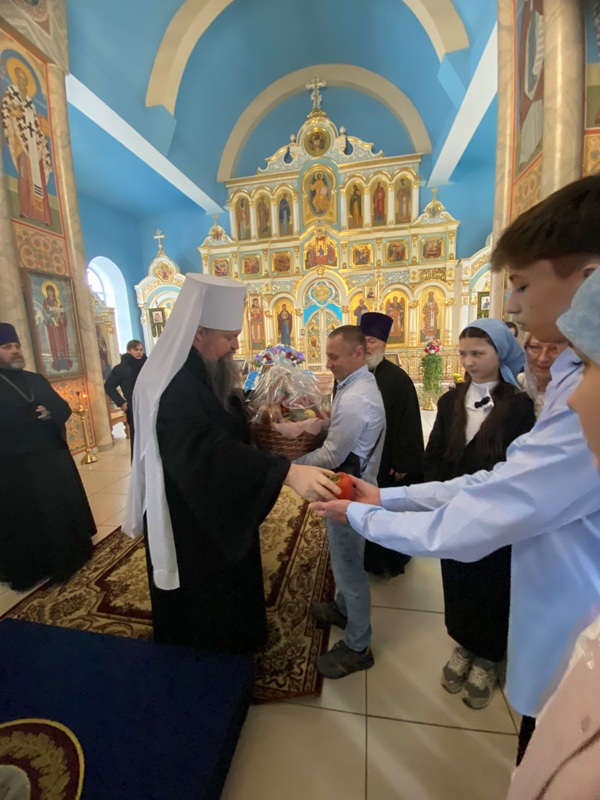 Богослужение завершилось славлением Пресвятой Богородицы перед Ее образом, а затем владыка поздравил прихожан храма с престольным праздником и подарил воспитанникам воскресной школы сладкие фрукты. В продолжении праздничных мероприятий гостей и прихожан пригласили на совместную торжественную трапезу.