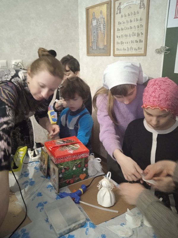 По Божией Милости и общими трудами в этот воскресный день удалось объединить эти задачи. Ребята причастились на утренней Литургии, во время трапезы вспомнили о Святителе Николае Чудотворце и Святителе Спиридоне Тримифунском, дни памяти которых отмечаются в декабре. Затем дружно с помощью волонтёров Раисы Владимировны и Елены Алексеевны из их заранее подготовленных материалов, сделали прекрасных неповторимых Ангелов, которые подарят радость ближним.