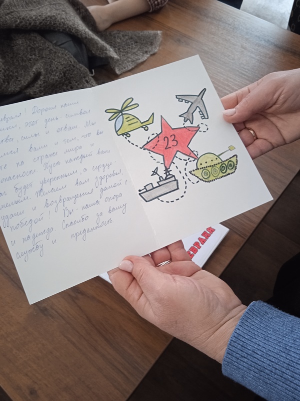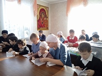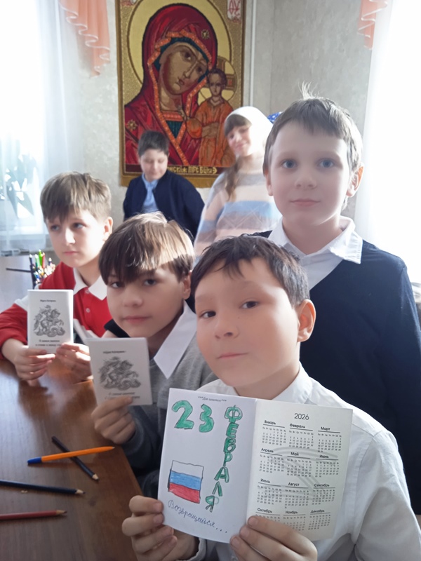 В гости к ребятам приходила Екатерина Евгеньевна Мурга, автор прекрасных стихотворений, уже доброй традицией слало проведение подобных мероприятий на приходе. Эта встреча была посвящена грядущему празднику - Дню защитника Отечества. Удалось продуктивно поработать в этот день, дети нарисовали иллюстрации и написали свои пожелания на заранее подготовленных книгах автора для воинов, в скором времени которые будут переданы на фронт.