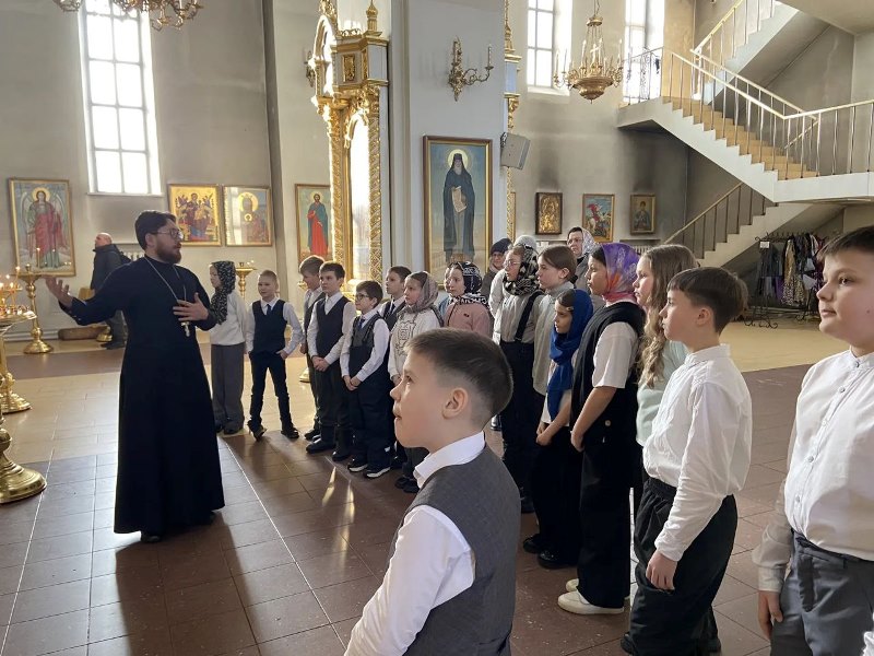 Юных гостей радушно встретил клирик собора — отец Гавриил Садуахасов. Он напомнил детям о правилах поведения в храме и стал для них настоящим проводником в мир православных святынь и истории. Школьники узнали, как строился собор, из каких частей состоит храм и какое духовное значение имеет каждый его уголок.