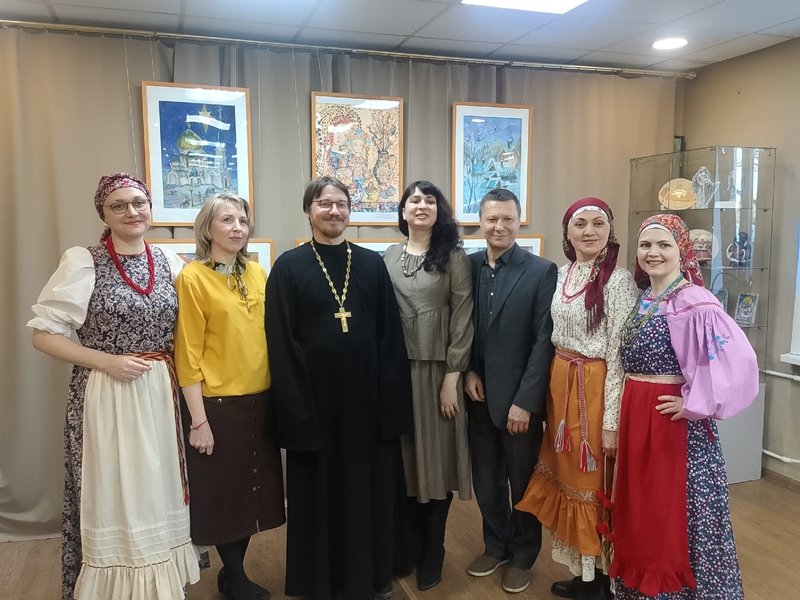 Украшением открытия выставки стали творческие номера артистов семейного народного театра «Зайкины сказки», которые участвовали здесь в рамках семейного проекта этнопедагогическая мастерская для родителей «Живые традиции России», организованного нашими друзьями - ОРОО «Центр этнокультурного развития».