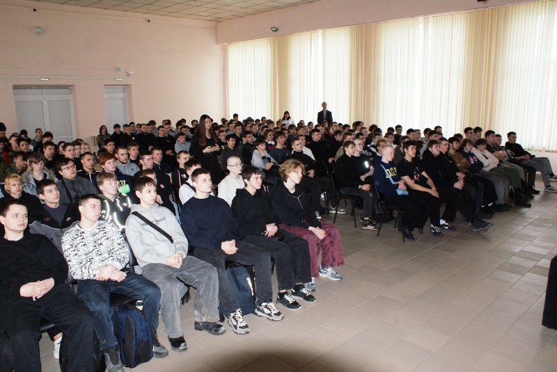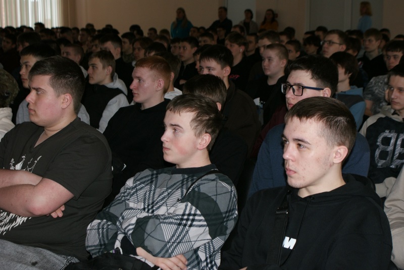 Во встрече приняли участие студенты – двести парней и две девушки, а также преподаватели техникума.