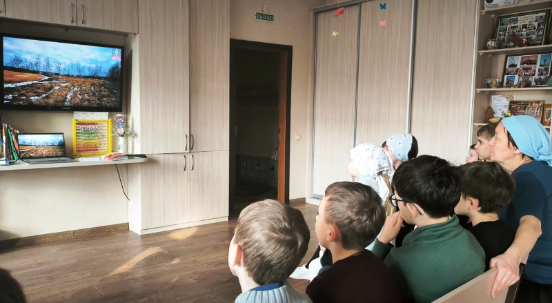Дети посмотрели мультфильм по сказе Г. Х. Андресяна «Девочка, наступившая на хлеб», рассуждали над поведением героини мультфильма и ее покаянием. Дети рассказали, что в их семьях очень бережно относятся к хлебу, поведали о своих любимых видах хлеба, а Никита Хвостов подчеркнул, что его любимый хлеб – святая просфора. И тогда все услышали об истории просфоры, ее внешнем виде и значении.