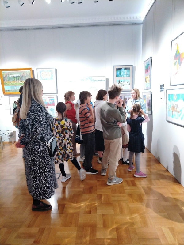 Переступив порог галереи, дети погрузились в атмосферу культуры, красоты и тишины, говорящей с ними языком живописи. Прогуливаясь по выставочному залу музея, ребята общались с произведениями искусства, только не вербально, словами, а «прочитывали» образы, созданные художниками. Ведь у каждого вида искусства есть свой язык, или свои средства выразительности: у музыки – звук, у литературы – слово, у танца – пластика движений.