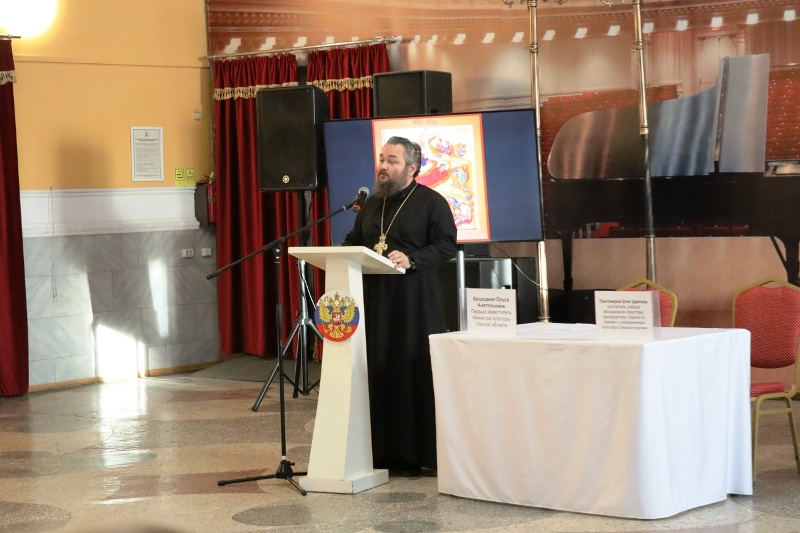 Работа секции началась с благословения протоиерея Олега Цветкова, настоятеля собора Воскресения Христова, руководителя отдела по связям с учреждениями культуры Омской епархии. Также он представил доклад на тему «Взаимодействие Омской епархии с учреждениями культуры».