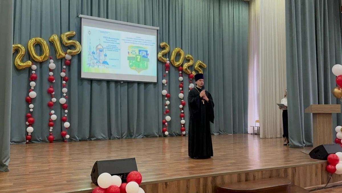 С первых минут гостей приветствовали искренние слова директора школы Белобабы Инги Георгиевны, обращение заведующей сектором религиозного образования и катехизации Омской Епархии Похитайло Т.В. Особую значимость событию придало благословение иерея, кандидата богословия, первого проректора Духовной семинарии Серафима Гоюка — его слова стали духовным напутствием ко всей дальнейшей работе секции.
