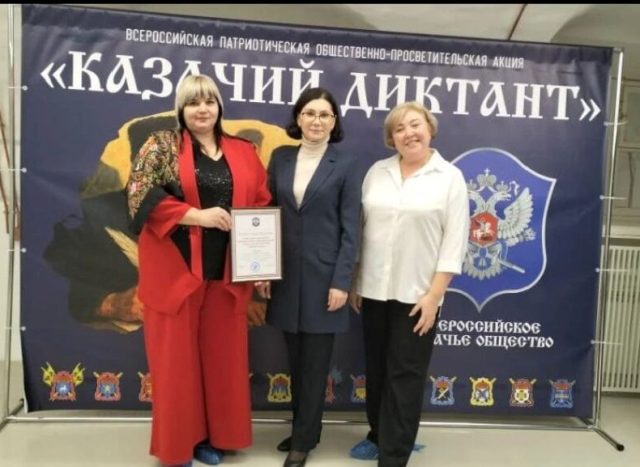Делегацию из Омска представляли заведующий детским садом Яна Витальевна Заремба и старший воспитатель Ольга Владимировна Остапченко. Они, кроме того, приняли участие во Всероссийской патриотической общественно-просветительской акции «Казачий диктант» в очном формате, где педагоги показали достойный результат в 100 баллов, ответив правильно на все вопросы.