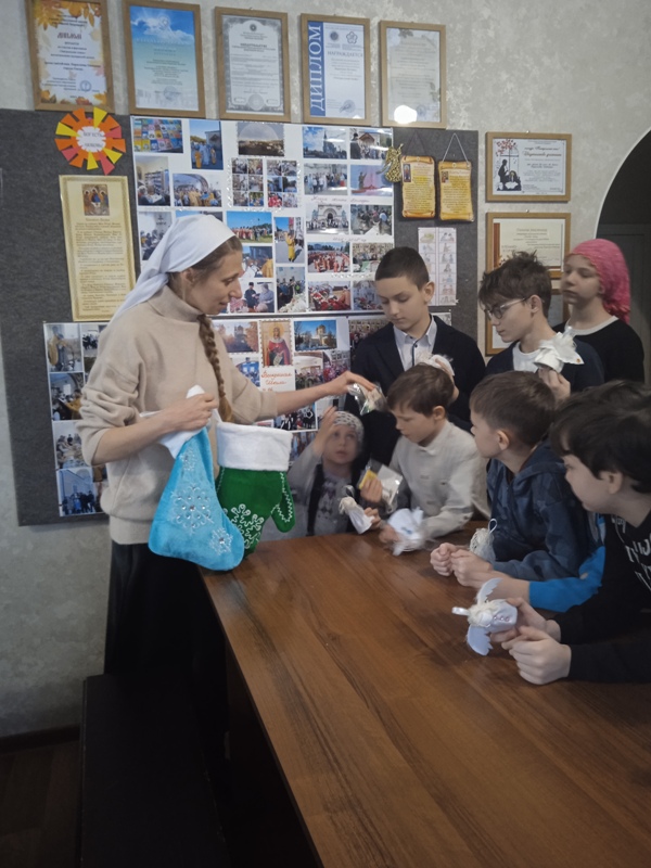 В конце занятия ребята заглянули в рукавичку и варежку, в которых их ждали сладкие подарочки в память о Святителях Чудотворцах и их добрых делах.