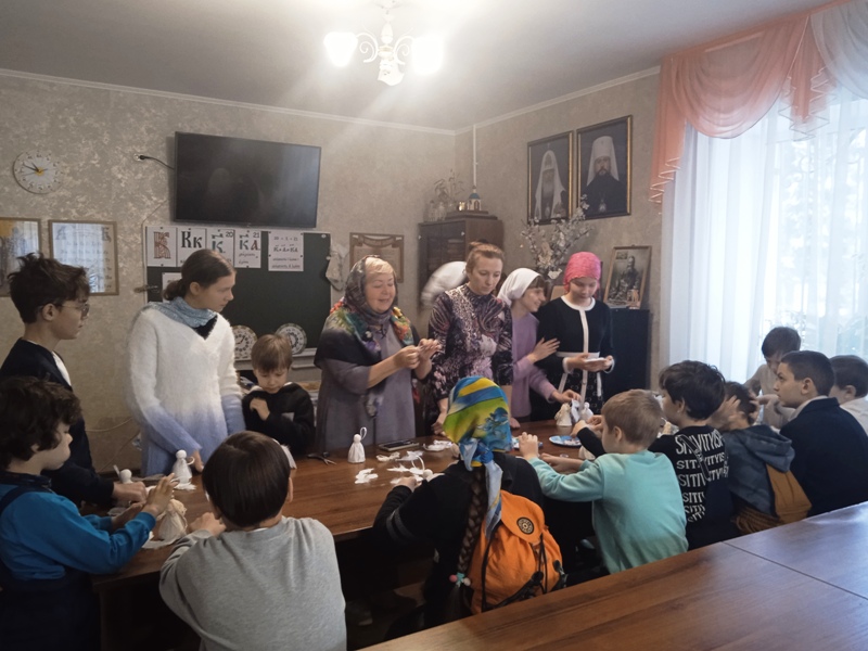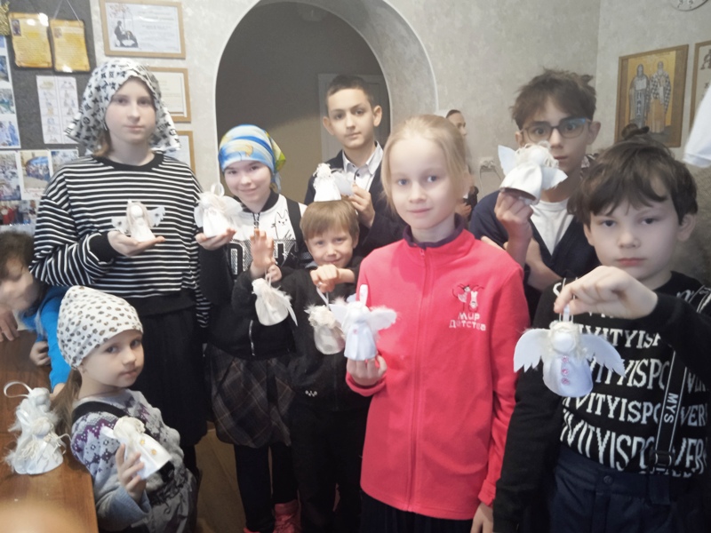 По Божией Милости и общими трудами в этот воскресный день удалось объединить эти задачи. Ребята причастились на утренней Литургии, во время трапезы вспомнили о Святителе Николае Чудотворце и Святителе Спиридоне Тримифунском, дни памяти которых отмечаются в декабре. Затем дружно с помощью волонтёров Раисы Владимировны и Елены Алексеевны из их заранее подготовленных материалов, сделали прекрасных неповторимых Ангелов, которые подарят радость ближним.