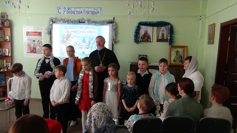 Силами воспитанников и педагогов была представлена постановка "Рождественский ангел", которая повествует о том, что нужно верить в чудо и Господь обязательно поможет. Так как идёт святочная неделя, ребята пропели колядки вместе с батюшкой Николаем и получили рождественские подарки.