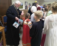 В завершении праздника отец Олег Ганженко подарил всем присутствующие детям сладкие подарки от Успенского кафедрального собора. Концерт получился очень теплым и душевным и подарим зрителям много ярких впечатлений.
