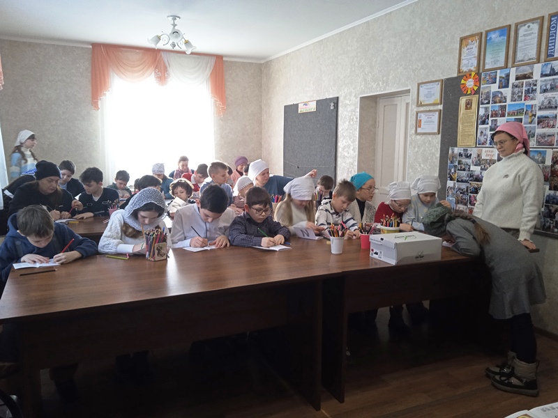 В гости к ребятам приходила Екатерина Евгеньевна Мурга, автор прекрасных стихотворений, уже доброй традицией слало проведение подобных мероприятий на приходе. Эта встреча была посвящена грядущему празднику - Дню защитника Отечества. Удалось продуктивно поработать в этот день, дети нарисовали иллюстрации и написали свои пожелания на заранее подготовленных книгах автора для воинов, в скором времени которые будут переданы на фронт.