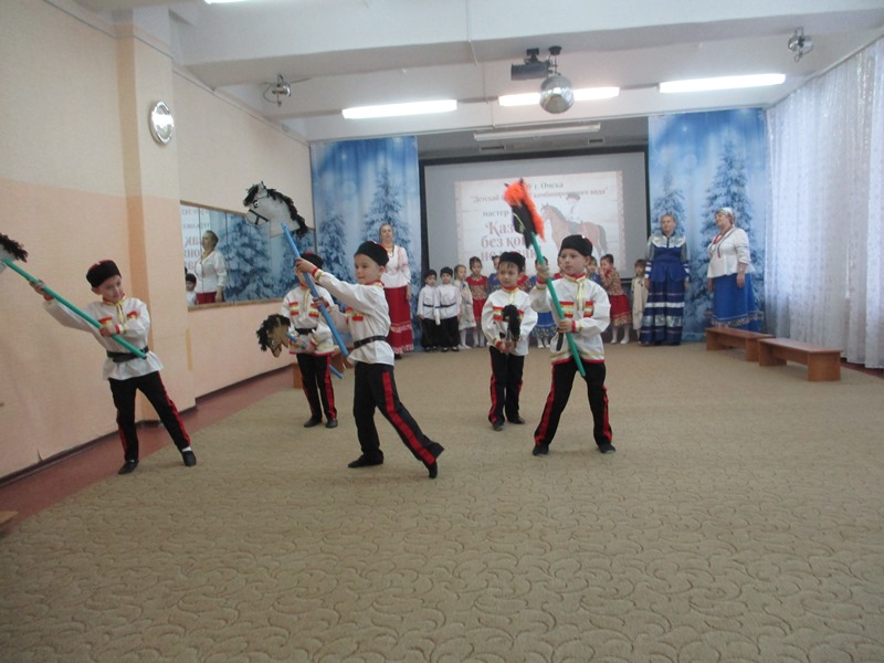 Мероприятие началось с интересной беседы о лошадях, их значении в жизни казаков и о том, насколько важно уметь заботиться о своем верном друге–коне. Затем воспитанники с увлечением играли в веселые игры «Лихой наездник»и «Казачья удаль», где каждый мог проявить свою ловкость, смекалку, сообразительность!