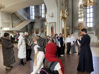 Юных гостей радушно встретил клирик собора — отец Гавриил Садуахасов. Он напомнил детям о правилах поведения в храме и стал для них настоящим проводником в мир православных святынь и истории. Школьники узнали, как строился собор, из каких частей состоит храм и какое духовное значение имеет каждый его уголок.