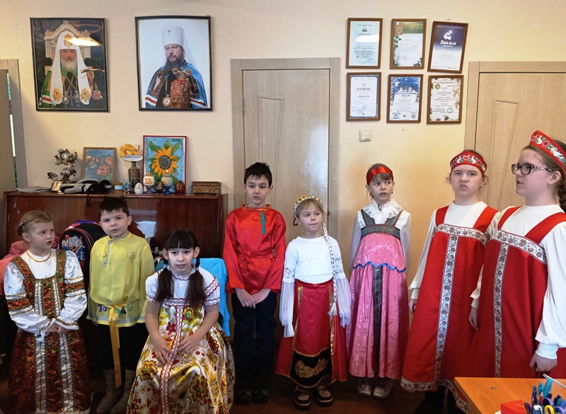 К мероприятию готовились долго и тщательно: подобрали яркие костюмы, подготовили фотозону из цветных ленточек, сделали вместе с ребятами красивое солнышко для фотосессии, выучили стихи и песни! На праздник пригласили прихожан, родителей, бабушек и дедушек. Гости пришли не с пустыми руками, принесли много домашней выпечки: блинчики, пироги, пирожки, печенье, и даже домашний мандариновый сок!