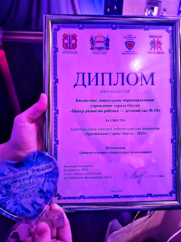 Они получили главный приз – «Хрустальное сердце Омска». А в номинации «Образовательная программа добровольчества» 3 место занял коллектив дошкольных групп при школе № 127. Все названные детские сады являются базовыми образовательными организациями отдела религиозного образования и катехизации Омской епархии, реализующими православный компонент в своих программах.