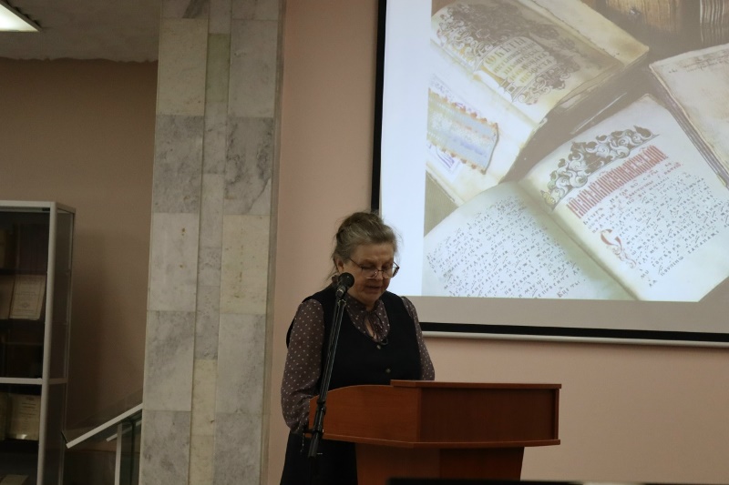 — Лариса Григорьевна Пономарёва, заведующая отделом «Центр книжных памятников», представила доклад «Образы евангелистов в книжной культуре Византии и Древней Руси», раскрывающий художественные и духовные традиции древней книжности.